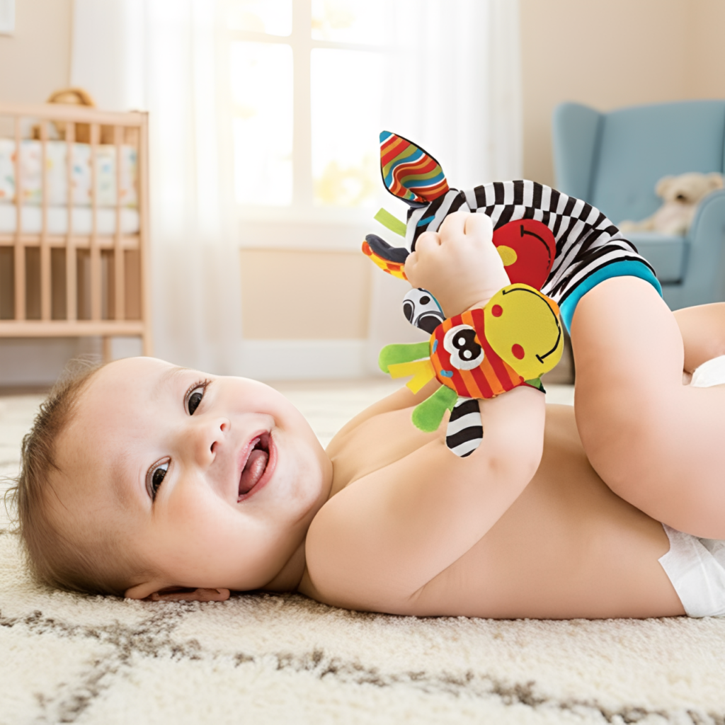 Se colocan fácilmente en pies y muñecas, promoviendo la coordinación, el movimiento y la curiosidad natural, de forma segura y divertida.